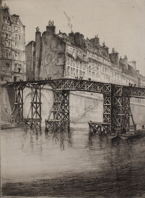 From 1906 to around 1930, Louis Orr spent his time in France producing magnificent etchings that captured scenes in Paris, Rouen, Avignon, and Southern France. Orr also made significant contributions to France's history with his famous portrayal of Reims Cathedral while it was being bombed by the Germans in WWI and also with his illustrious commission by France of a portrait of Louis Pasteur.